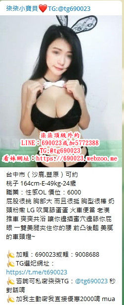 嗨你好唷!我是介紹台灣本土妹外送 #旅館、#酒店、#飯店、#商旅、#熟客可住家的柒柒瀨690023 ★介紹純兼差正妹、選擇多、#不定時有三線小模、#三線藝人、#學生、#空姐、#處女、#單親媽媽、#熟女人妻不等報班、#孕婦也有哦比較少 ★全套服務:#主動熱情、#健談好聊、#敢玩配合高、#主要不偷時間、#還有100%真實客評專區不做假、#專做口碑 ★外約地區:#台北、#新北、#林口龜山萬壽路、#新竹、#台中、#彰化南投、#高雄、#台南 ★聯絡方式:籟690023 Telegram:tg690023【現約現折500–3000現金、加節更優待哦】 ★佳麗官網:https://690023.webzoo.me【建議一定保存哦】 ★付費方式:#見到妹本人現金收費、#不點數、#不匯款、#不勉強消費、#可退換、#以客為尊,#約妹滿意在付費 ★營業時間:下午10:00 ~ 凌晨:03:00